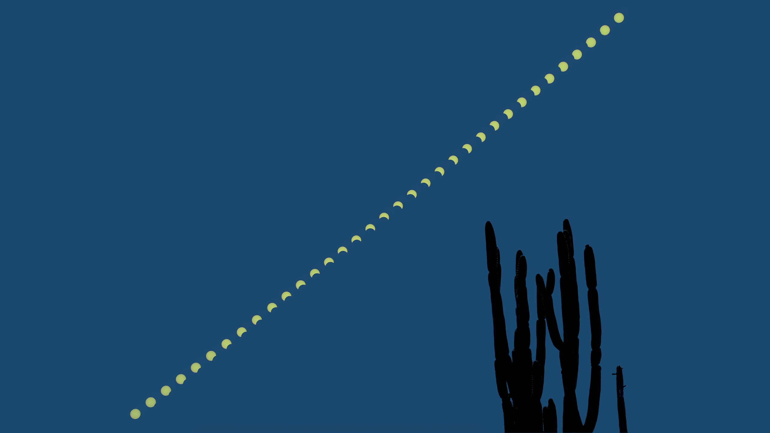 | This seqence picture was taken from Pasadena, CA, with a Pentax 6x7 film camera, 105mm lens, and solar filter. In a dark room, the film was wound forward and placed in the camera without a takeup spool. This allowed the camera shutter to be wound and fired without moving the film, enabling a multiple exposure picture. The photo of the sky and foreground was taken with the same camera and lens, but with the solar filter removed after the sun was behind a tree. Unlike the 2024 eclipse, the moon's motion in relation to the sun was almost parallel with the sun's apparent motion across the sky. This is because the 2002 eclipse occurred near the time of summer solstice, so the earth's axis was not significantly tilted CW or CCW (as seen from the sun) with respect to the earth's orbital plane. | |