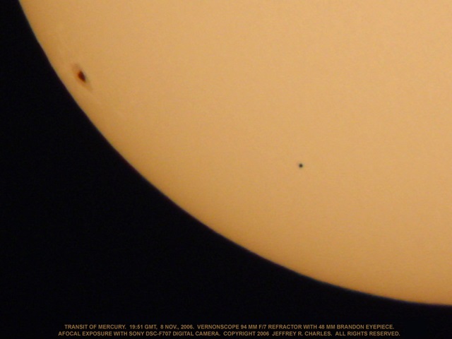 | Transit of Mercury, 8 November, 2006. Ingress at 19:13 GMT. | |