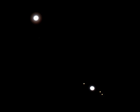 | These 450 x 360 pixel JPEG image are of the close 23 February, 1999 conjunction of Venus and Jupiter, as observed from Sun City, AZ. |